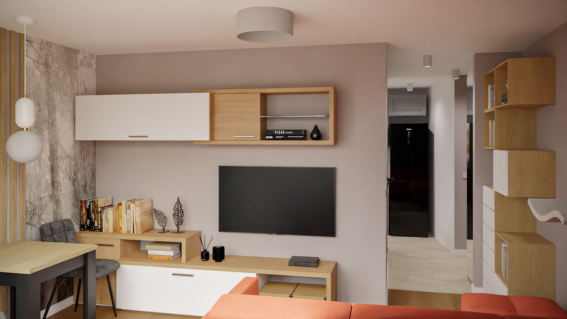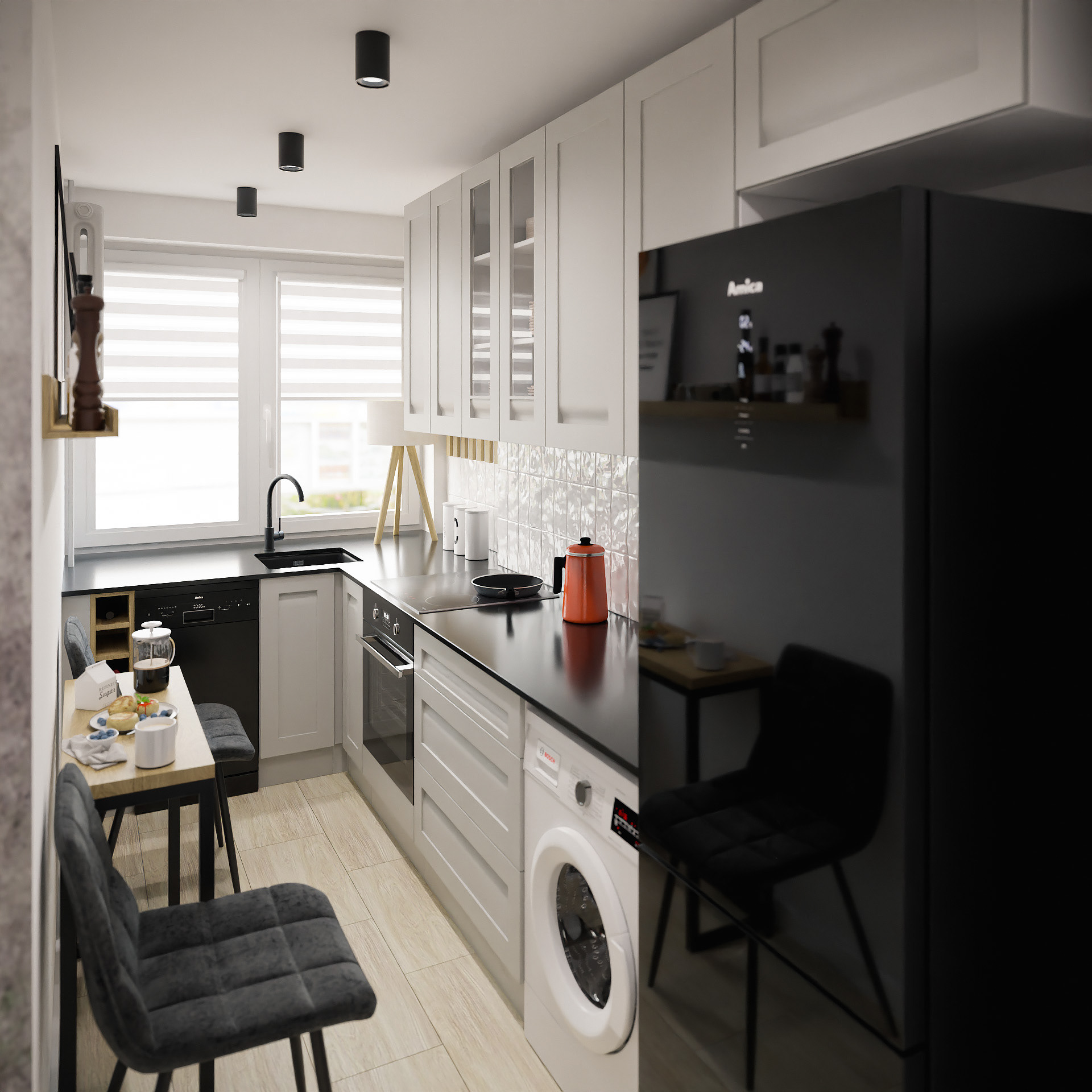 Another project of the apartment located in Gorzów Wielkopolski (Poland). Renders were made in Blender. They represent living room, kitchen, hallway and bedroom. Interior design by Lara Studio.
