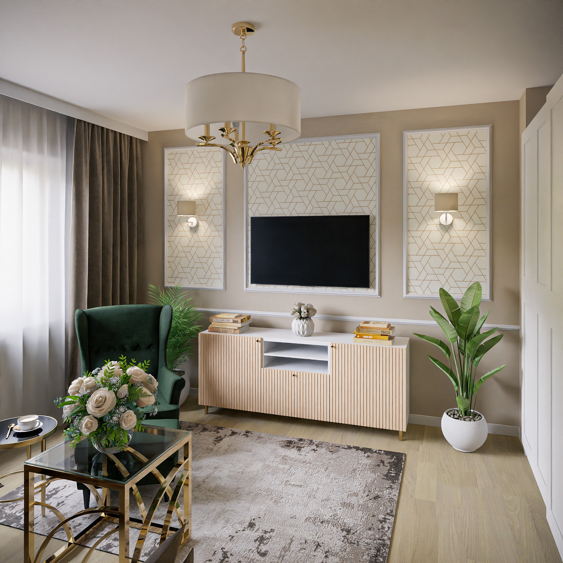 My latest ArchViz project consists of 16 new renders. They show interior design of the apartment located on Plac Słoneczny in Gorzów Wlkp. (Poland). The apartment consists of living room, bedroom, kitchen, bathroom and hallway. Interior design was made by Lara Studio.
