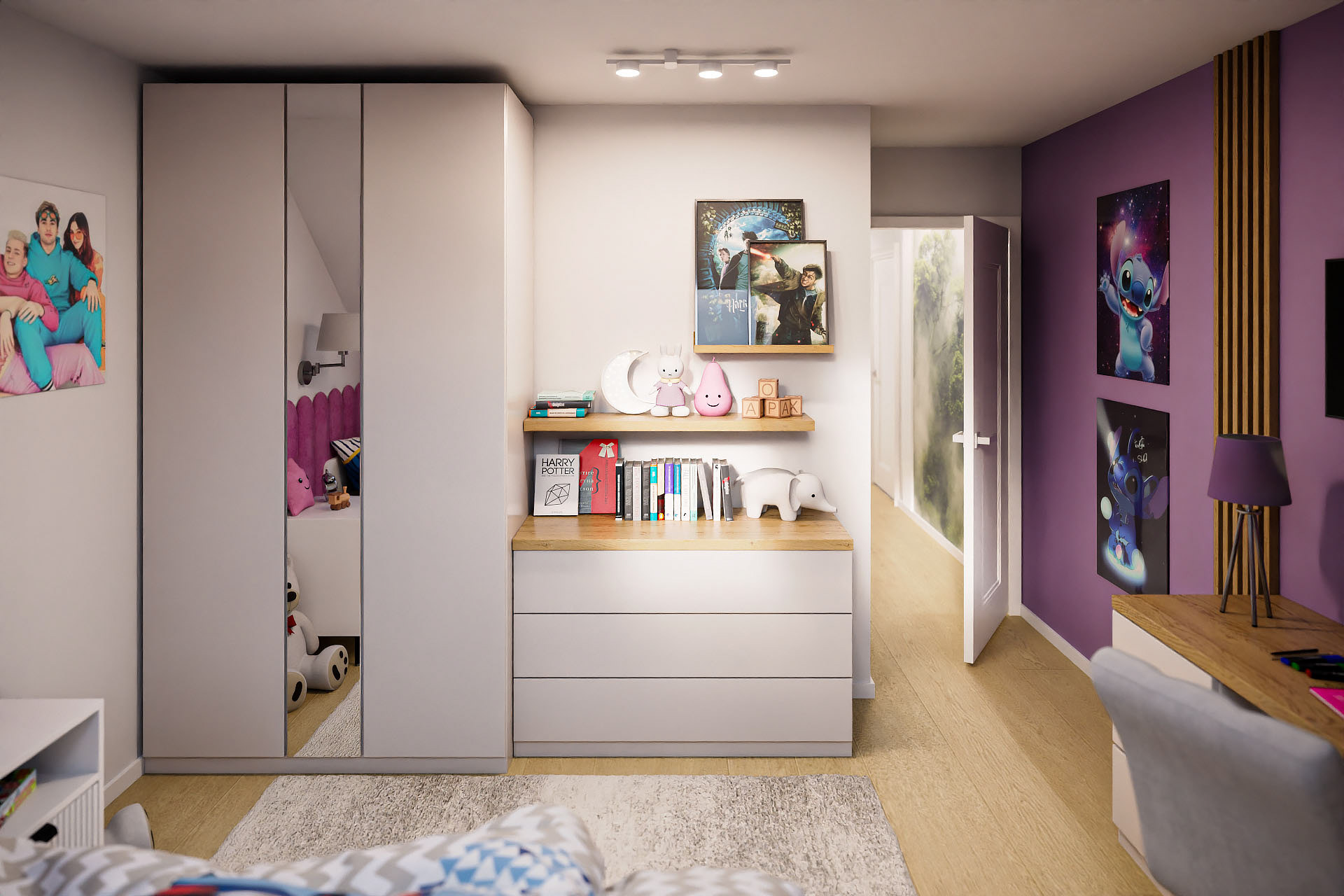 These are visualizations I have recently made for Lara Studio. The project involved five interiors: master bedroom, two kids' rooms, bathroom and hall.