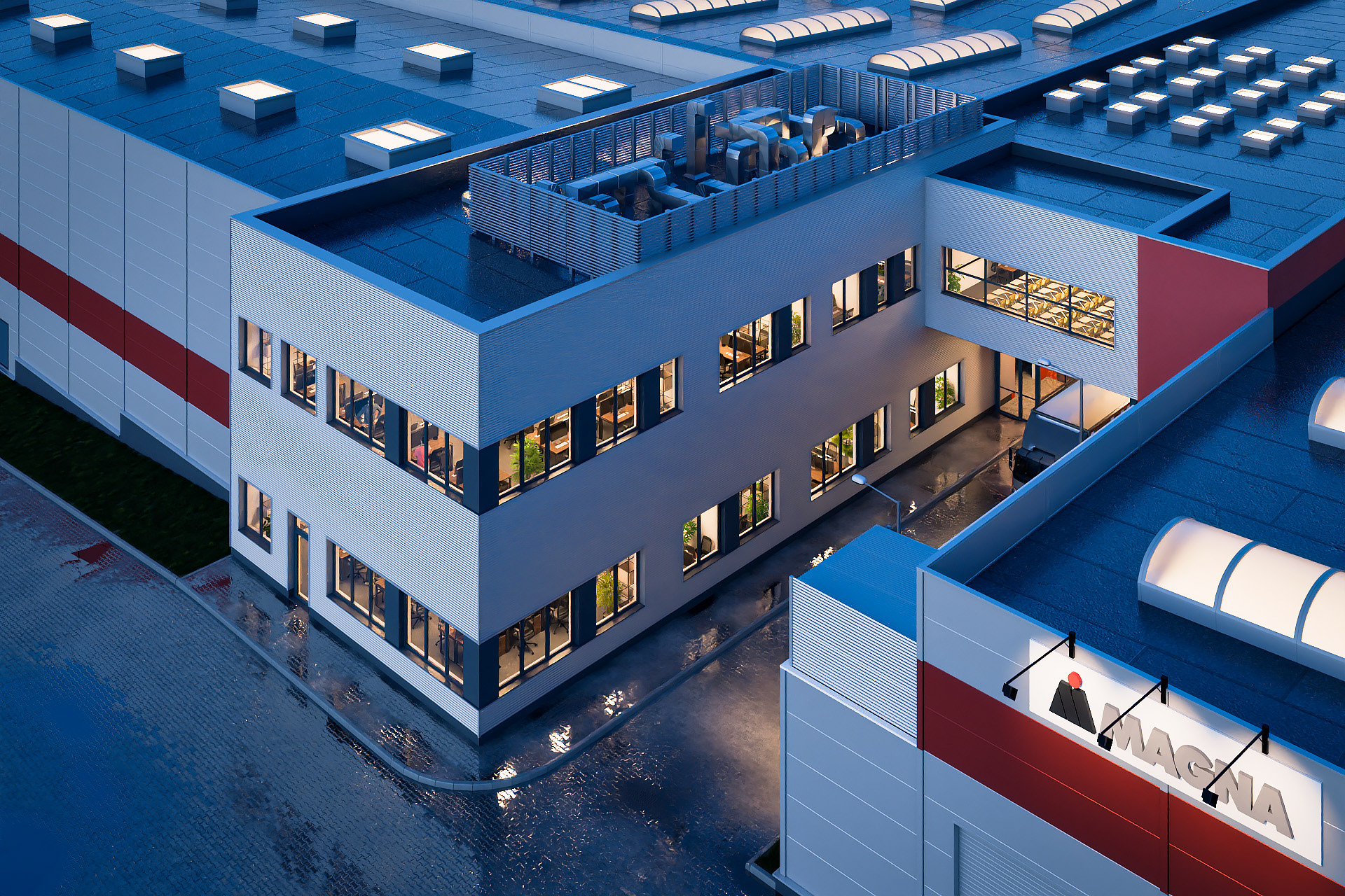 Another factory extension in Kostrzyn. The building was designed by Autorskie Biuro Projektów "M&G" from Gorzów Wlkp. (Poland). Visualizations were made in Blender and postproduction in Photoshop.